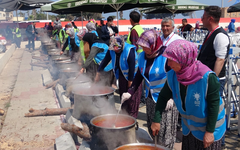 Programı koordine eden AK Parti Erdemli İlçe Başkanı Ali Mustafa Poş," Bugün burada 71 mahallemizi temsilen 71 kazan da yöresel yemeklerimizden burada yaptık. Bugün burada birlik beraberlik var, dayanışma var. Dayanışma içerisinde burada tüm Erdemli burada olacak. Tüm halkımızla, tüm köylülerimizle, mahallelerimizle burada bir araya gelerek yöresel yemeklerimizi hem Türkiye'ye hem dünyaya tanıtacağız, hem bir taraftan da bu ziyafeti burada gerçekleştireceğiz" dedi.