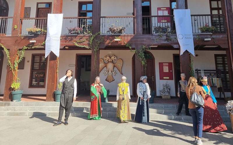 Festivalin ikinci günü ilk durak, Kazancılar restoran oldu. Sabah kahvaltısında yenen leziz ciğer, şehirde güne tam bir Adanalı gibi başlamanın ilk adımıydı. Tarihi çarşının o keyifli sokaklarında rehber eşliğinde yürüyerek yapılan gezide Kadın Kooperatifleri Birliği’nin el emeği ürünlerinin hikayeleri, Büyük Saat ve Ulu Cami Külliyesi’nin tarihi dinlendi, tarihi Tepebağ evleri sokağında fotoğraflar çekildi, Kahve Müze’sinde geleneksel içeceklerimizin başında gelen kahvenin yolculuğuna tanıklık edildi. Öğle yemeği molası ise Adana Olgunlaşma Enstitüsü Kültür Sanat Merkezi’nin tarihi binasının avlusunda verildi. Enstitü üyesi kadınların saatler süren el emeğiyle hazırladıkları eserlerin sergilendiği alandaki aksesuarlar, takılar, geleneksel giysiler, tarihsel motiflerle bezeli porselen yemek takımları tüm konukları hayran bıraktı. Yine geleneksel motiflerle elde hazırlanmış porselen ve seramik eserler satılan Kültür Merkezi’nin mağaza bölümünde yapılan alışverişten sonra avluda kurulan şık masalarda buluşan konuklar enstitünün çalışmalarını da yöneticilerinden dinledi.