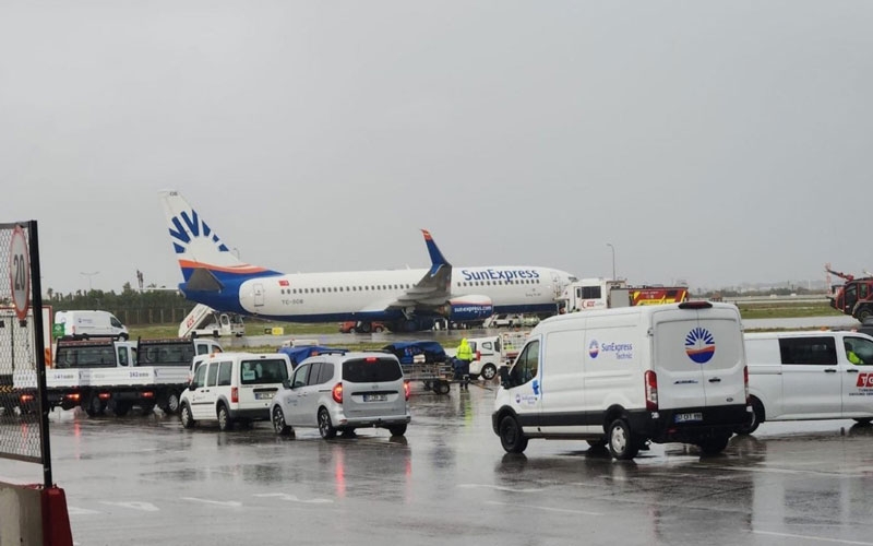 Sunexpner’ten yapılan aç ıklamada Antalya-Gaziantep seferini yapmaya hazırlanan XQ7646 uçuş numaralı SunExpress uçağının taksi sırasında iniş takımı dikmesinde teknik bir arıza meydana geldiği belirtilerek " Yolcular emniyetli bir şekilde uçaktan indirilmiş, uçak teknik incelemeye alınmıştır. Antalya-Gaziantep seferi farklı bir uçakla gerçekleştirilecektir" denildi.