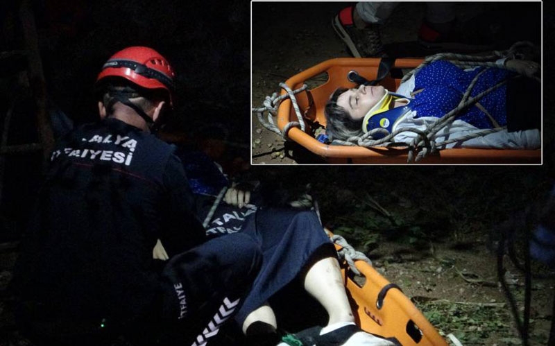 Çukura düşen kadının yaklaşık yarım saat süren çalışmalar sonunda itfaiye ekipleri tarafından olduğu yerden kurtarıldı. Kaşık sedyeye alınarak halatla yukarı çekilen kadının sol ayak bileğinin kırıldığı belirlendi.