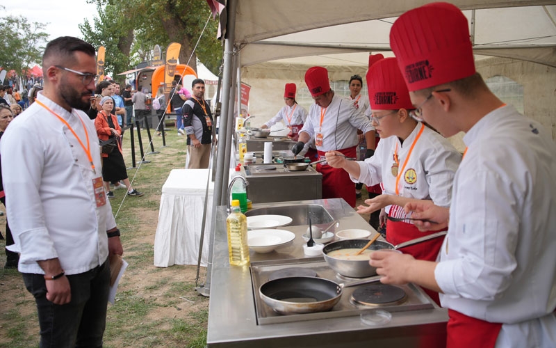 Edirne’de düzenlenen "Topraktan Sofraya Gastronomi Festivali"nde lise öğrencileri arasında ekşili köfte yarışması gerçekleştirildi.