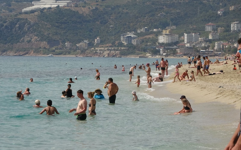 Antalya'nın Alanya ilçesinde bahar aylarında yaşanan yaz havası, turizm hareketliliğini artırdı. Yerli ve yabancı turistler sahilleri doldururken, İsveç'ten tatil için gelen Müslüm Kozlak, "Başka bir yerde bu kadar temiz deniz görmedim'' dedi.