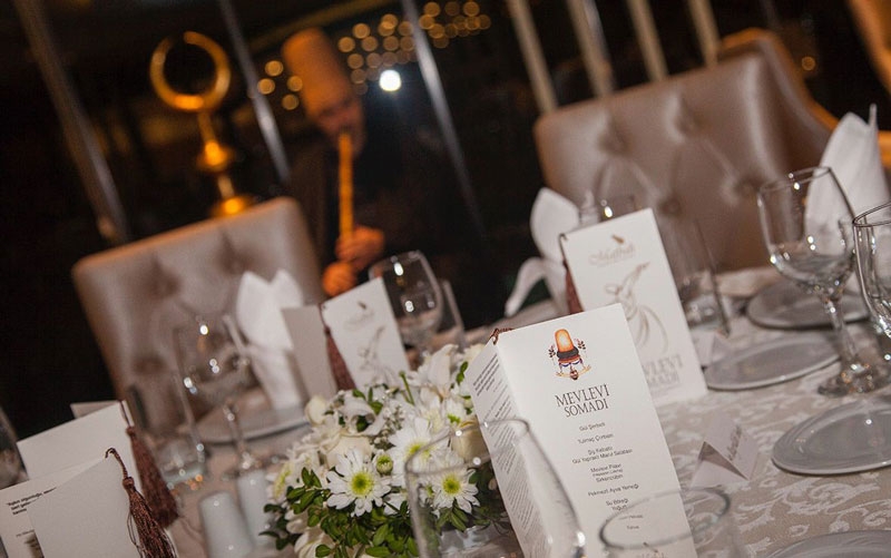 Bu hürmetin en büyük ispatı, Mevlana’nın çok sevdiği aşçısı Ateş-baz Veli (ateşle oynayan ermiş kişi) öldüğünde, onun adına bir türbe yapılmasıdır. “Somat” (sofra) adabına da büyük önem veren sufiler, günde öğle ve akşam olmak üzere iki kez yemek yerler. Sofrayı can’ lar (mürid) hazırlar. Tuz, yemeklerde törensel ifade taşır. Yemek onunla başlar, onunla biter. Hazırlıklar bitince, yemeğin yenmesine gelir sıra. Kazancı Dede, kazanın kapağını açınca, can’ lar kazanı ocaktan alırlar. Kazancı Dede’nin duası ile ‘Huuu Somata Salaaa’ diyerek yemek daveti duyurulur. Elleri önde bağlı duran sufiler, kapıya gelince başlarını eğerek selamlaşır ve sofraya geçerler. Şeyhin katılımı ve duası ile yemeğe başlanır. Yemek esnasında kesinlikle konuşulmaz. Mevlevilerde yemek faaliyeti adeta bir ibadet halidir; yemek yerken kendilerine nasip olan lokmalar için devamlı şükrederler. Yemeğe topluca başlandığı gibi topluca bitirilir. Menüde kullandığımız tüm kaynak Türk mutfak kültürü ve yemekleri araştırmacısı olan Nevin Halıcı’ya ait. Bizde bu farklı lezzetleri tatmak ve deneyimlemek isteyen misafirlerimizi öğle ve akşam yemeklerine bekliyoruz” dedi.