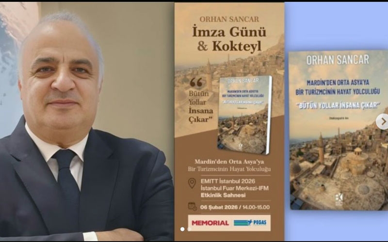 Turizm dünyasının saygın isimlerinden Orhan Sancar, yarım asırlık mesleki birikimini ve Mardin’den başlayıp dünyaya yayılan yaşam yolculuğunu bir kitapta topladı. "Mardin’den Orta Asya’ya – Bir Turizmcinin Hayat Yolculuğu" başlığını taşıyan eserin ilk imza günü ve kokteyl etkinliği, EMITT 2026 kapsamında İstanbul Fuar Merkezi’nde gerçekleştirildi.