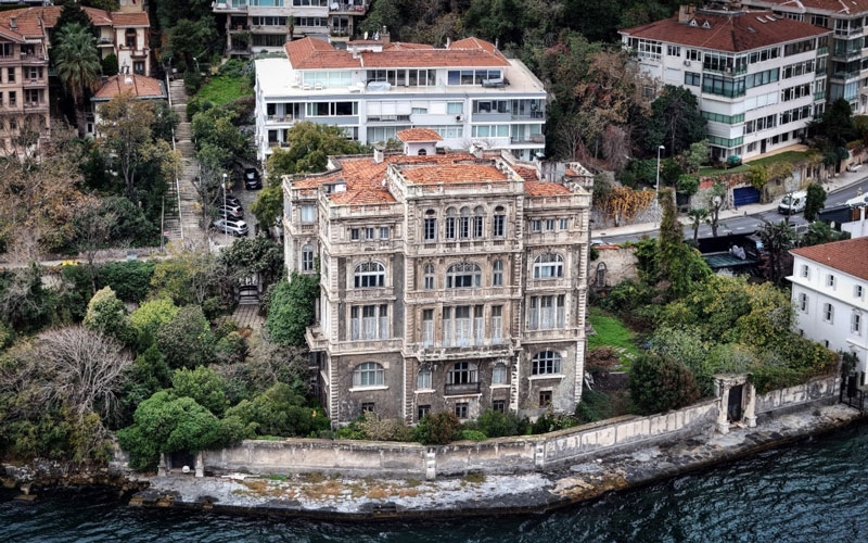 Dron ile kaydedilen görüntülerde, yalının boğazı kucaklayan benzersiz manzarası, yemyeşil bahçesi ve şatoyu andıran heybetli mimarisi tüm detaylarıyla gözler önüne serildi. Mavinin ve yeşilin iç içe geçtiği noktada yükselen bina, izleyenlerde adeta hayranlık uyandırıyor.