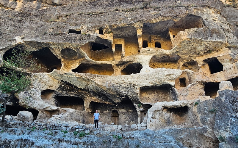 Gezgin olarak birçok yeri gezdiğini ve bu güzellikten mahrum kaldığı için üzgün olduğun ifade eden Devran Mola, "Milattan önce 2 bin 500 yıllara dayanan bir mağa şeklinde apartman odacıklar söz konusu. Daha önde gerek ev olarak gerek medrese olarak, diğer yaşam alanları olarak kullanmışlar. Büyük bir bölümü tahripten dolayı yıkılmasına rağmen halen apartman etkisini gösteriyor" dedi.
