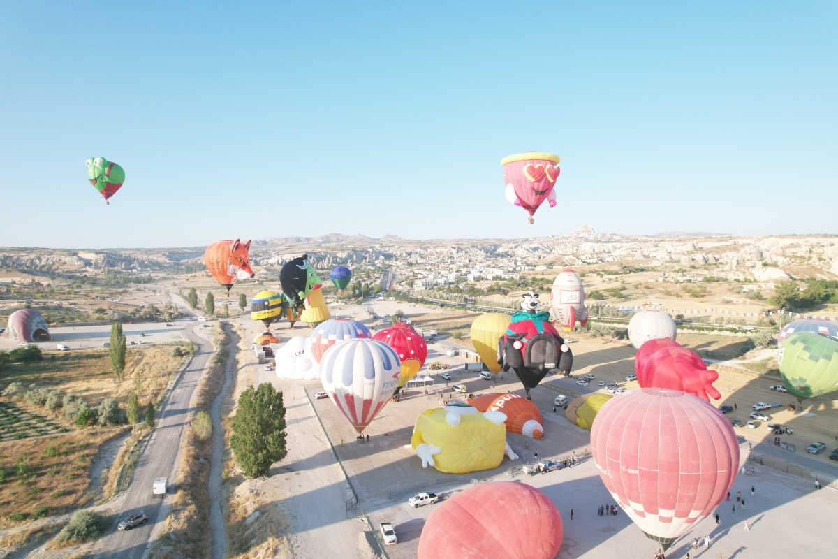 Göreme beldesindeki festival alanında, sabahın erken saatlerinde ekiplerin hazırlıklarının ardından çeşitli figürlerdeki balonlar peş peşe gökyüzüne yükseldi. Değişik renk ve figürlü sıcak hava balonları, Kapadokya'nın eşsiz manzarasında peribacaları ve doğal kaya oluşumlarının üzerinde süzülürken, yerli ve yabancı turistler ortaya çıkan renkli manzarayı izledi.