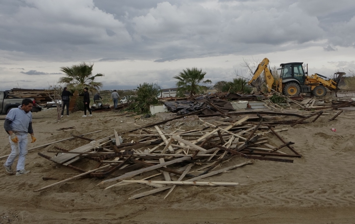 Antalya'nın Manavgat ilçesinde Side büyük plajda bulunan 15 günübirlik işletme Kültür ve Turizm Bakanlığı'nın yıkım kararı doğrultusunda işletme sahipleri tarafından yıkıldı.