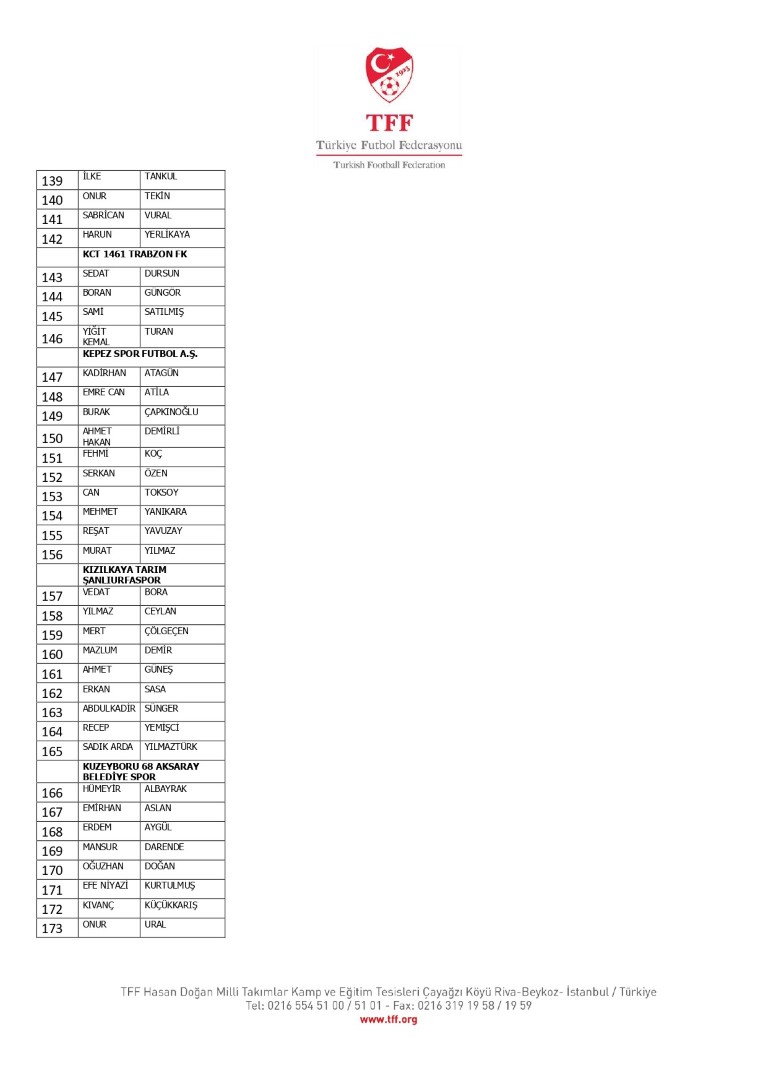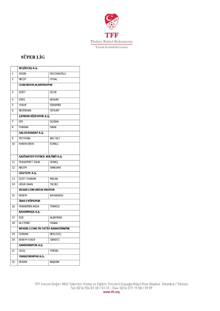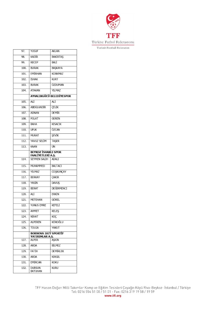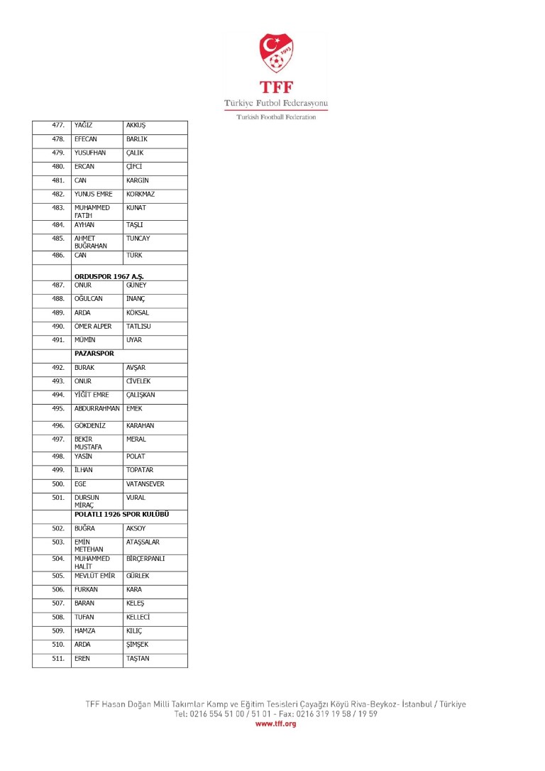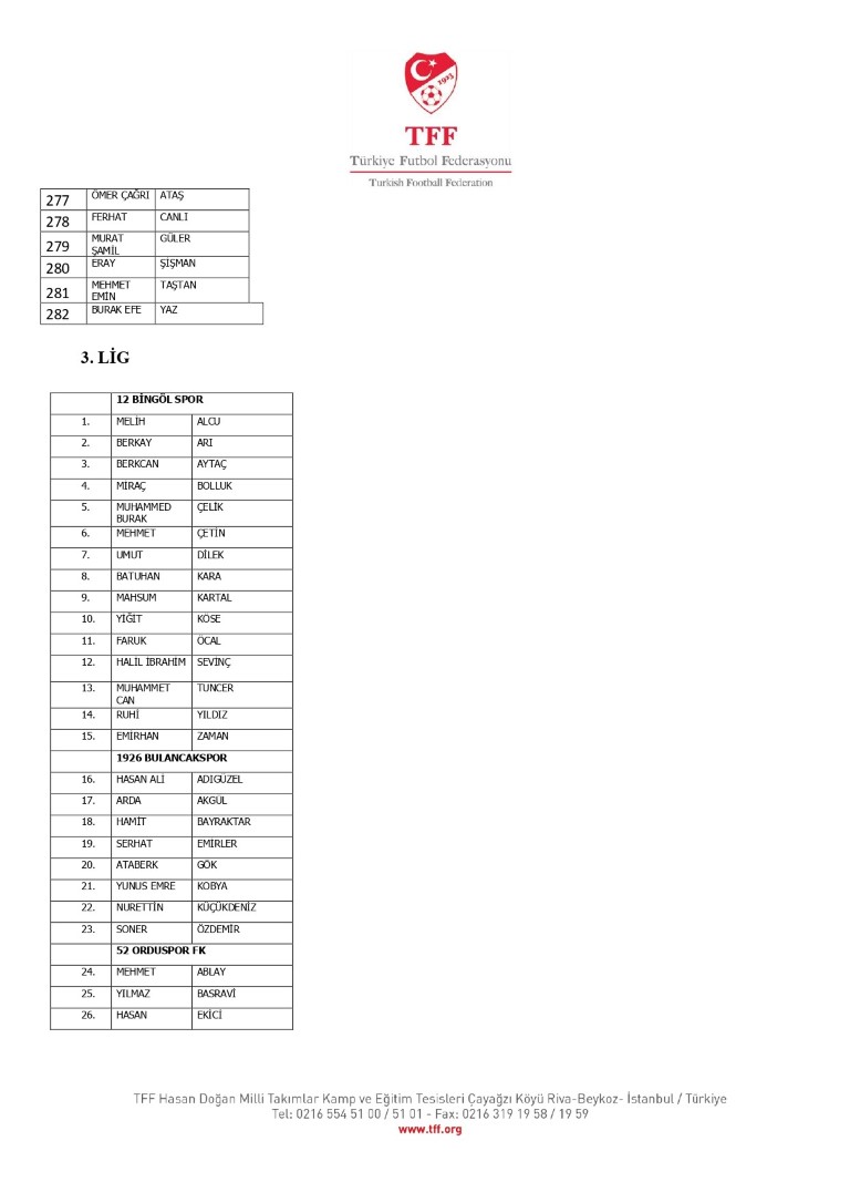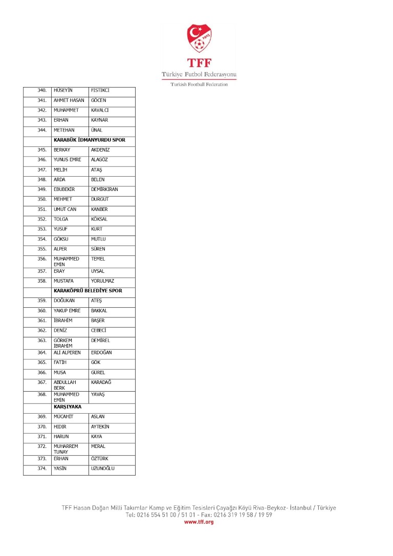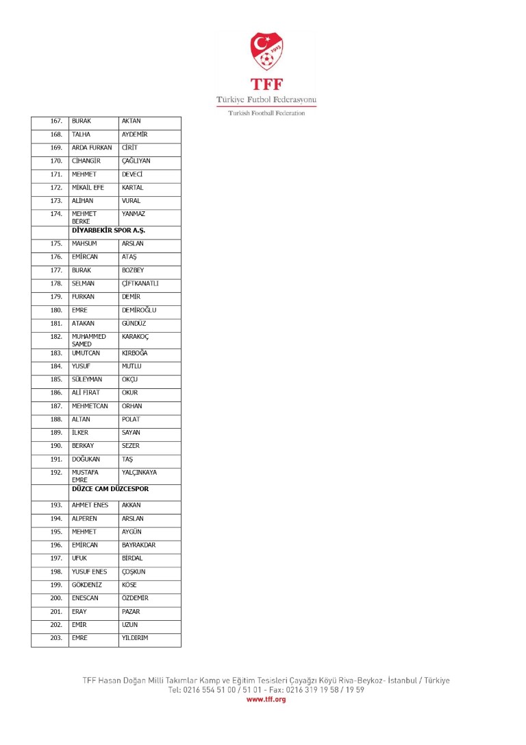 TFF Yönetim Kurulu’nun 10.11.2025 tarihli kararı ile TFF 2. Lig ve TFF 3. Lig müsabaka fikstürlerinin 2 hafta kaydırılmasına karar verilmiştir. TFF Süper Lig ve TFF 1. Lig müsabakaları daha önce ilan edildiği şekilde oynanmaya devam edecektir. Sadece tek bir kere bahis hareketi olduğu görülen 47 futbolcunun disiplin sevk işlemleri, telafisi mümkün olmayan zararlara sebebiyet vermemek adına ilgili kurumlardan gelecek cevabi evraklar neticesinde elde edilecek yeni delil ve bilgiler çerçevesinde değerlendirilecektir. Türkiye Futbol Federasyonu tarafından resmi kurumlarla yapılan yazışmalar devam etmekte olup bu gelecek cevaplara göre soruşturma genişletilerek devam edecektir. Futbol Disiplin Talimatı’nın 57. maddesi uyarınca PFDK’ya sevk edilen 1024 futbolcu aşağıda yer almaktadır" denildi.
