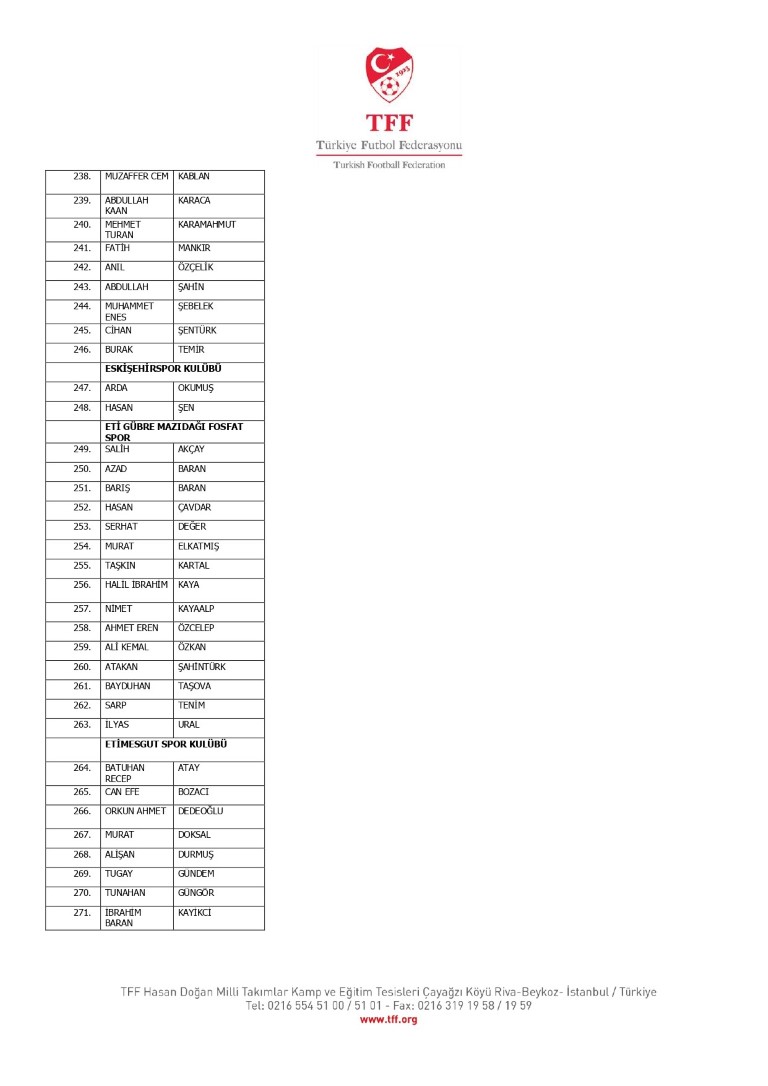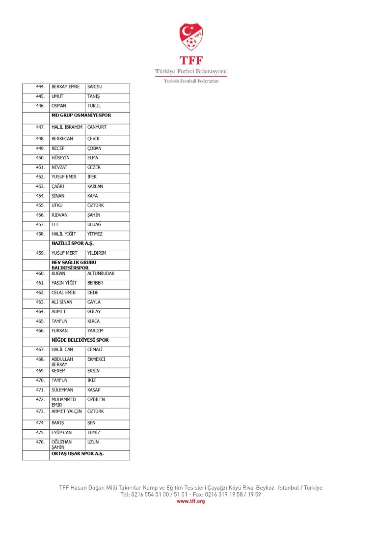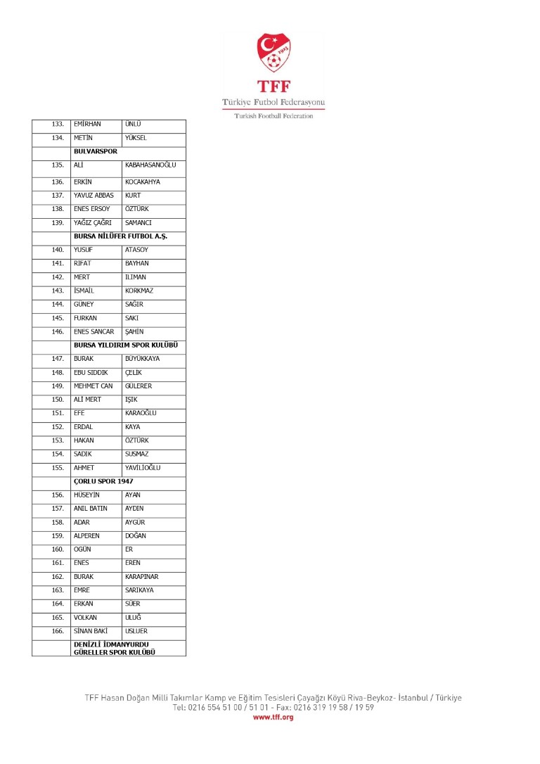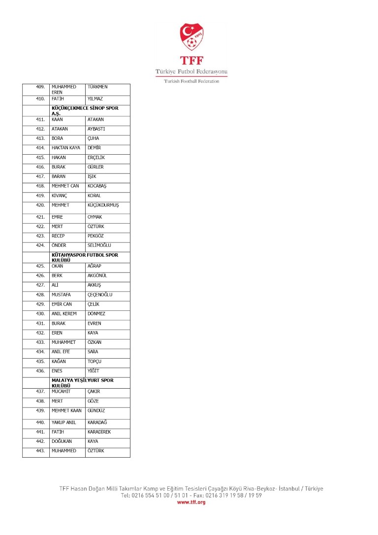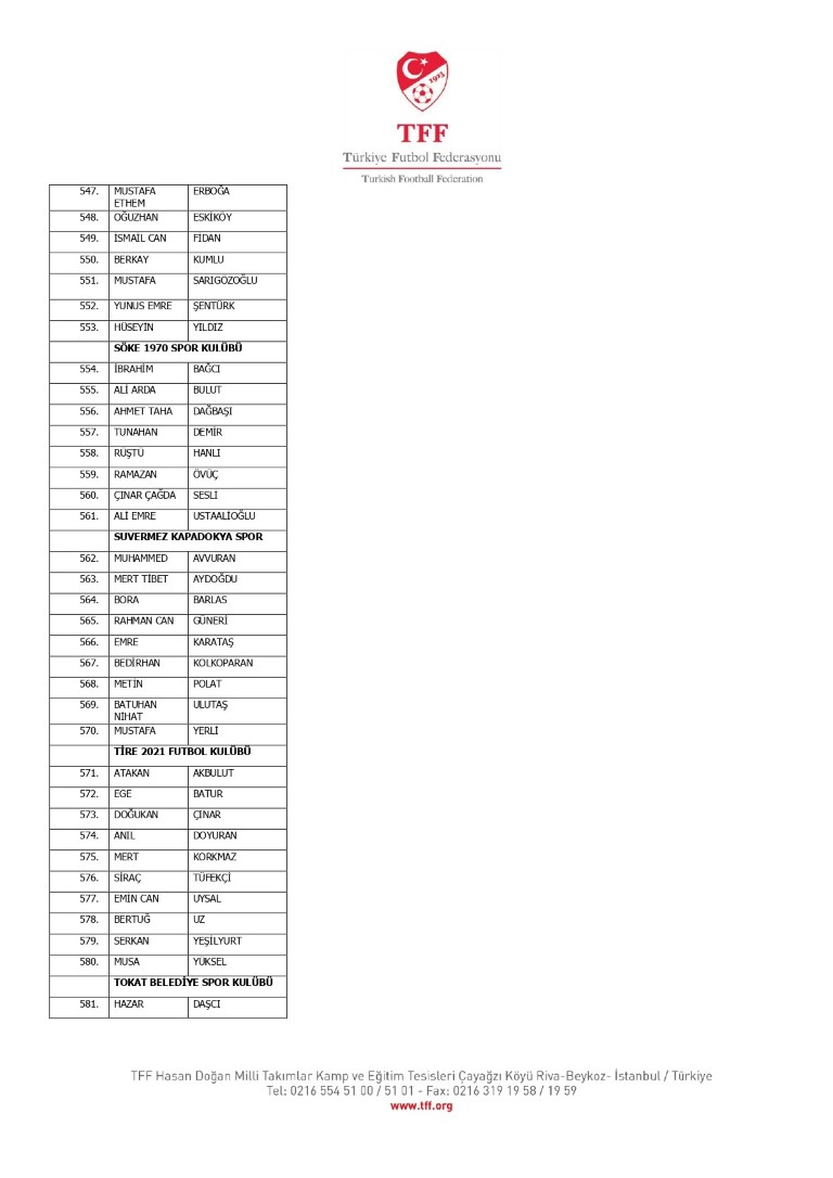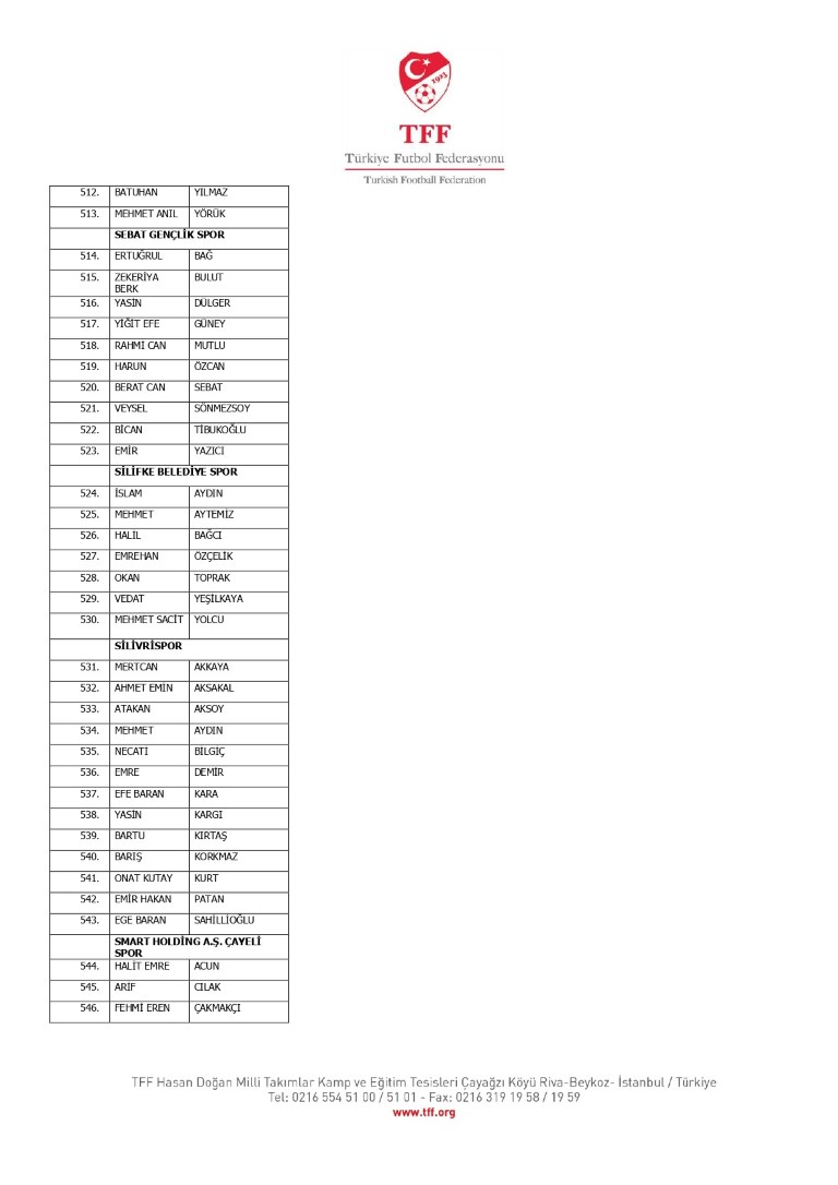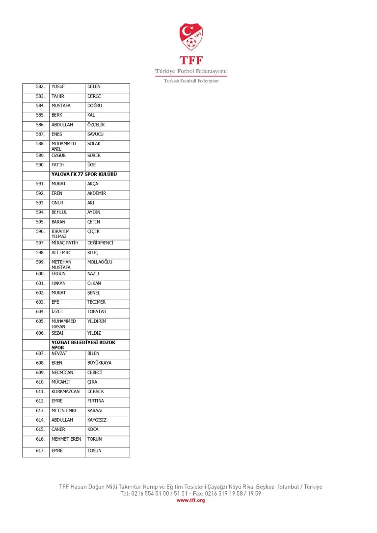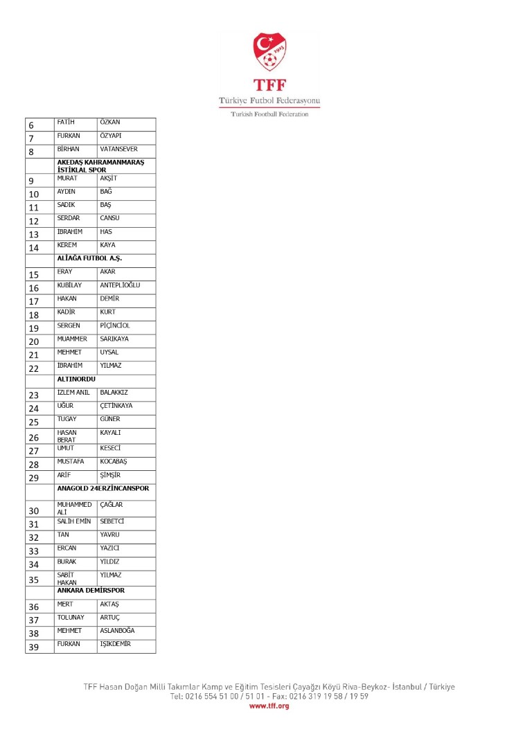 TFF Yönetim Kurulu’nun 10.11.2025 tarihli kararı ile TFF 2. Lig ve TFF 3. Lig müsabaka fikstürlerinin 2 hafta kaydırılmasına karar verilmiştir. TFF Süper Lig ve TFF 1. Lig müsabakaları daha önce ilan edildiği şekilde oynanmaya devam edecektir. Sadece tek bir kere bahis hareketi olduğu görülen 47 futbolcunun disiplin sevk işlemleri, telafisi mümkün olmayan zararlara sebebiyet vermemek adına ilgili kurumlardan gelecek cevabi evraklar neticesinde elde edilecek yeni delil ve bilgiler çerçevesinde değerlendirilecektir. Türkiye Futbol Federasyonu tarafından resmi kurumlarla yapılan yazışmalar devam etmekte olup bu gelecek cevaplara göre soruşturma genişletilerek devam edecektir. Futbol Disiplin Talimatı’nın 57. maddesi uyarınca PFDK’ya sevk edilen 1024 futbolcu aşağıda yer almaktadır" denildi.