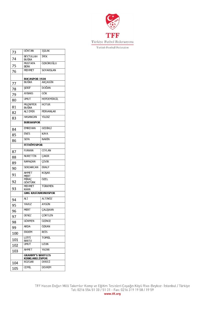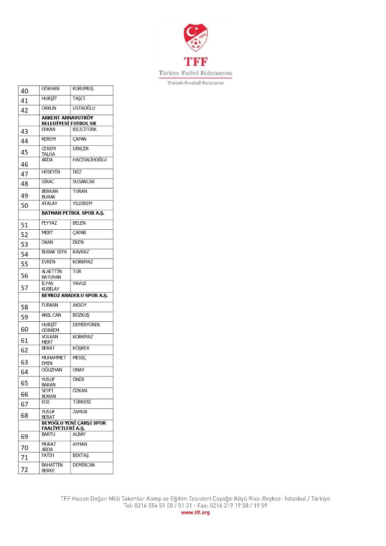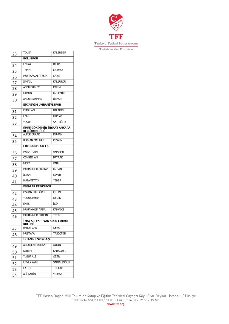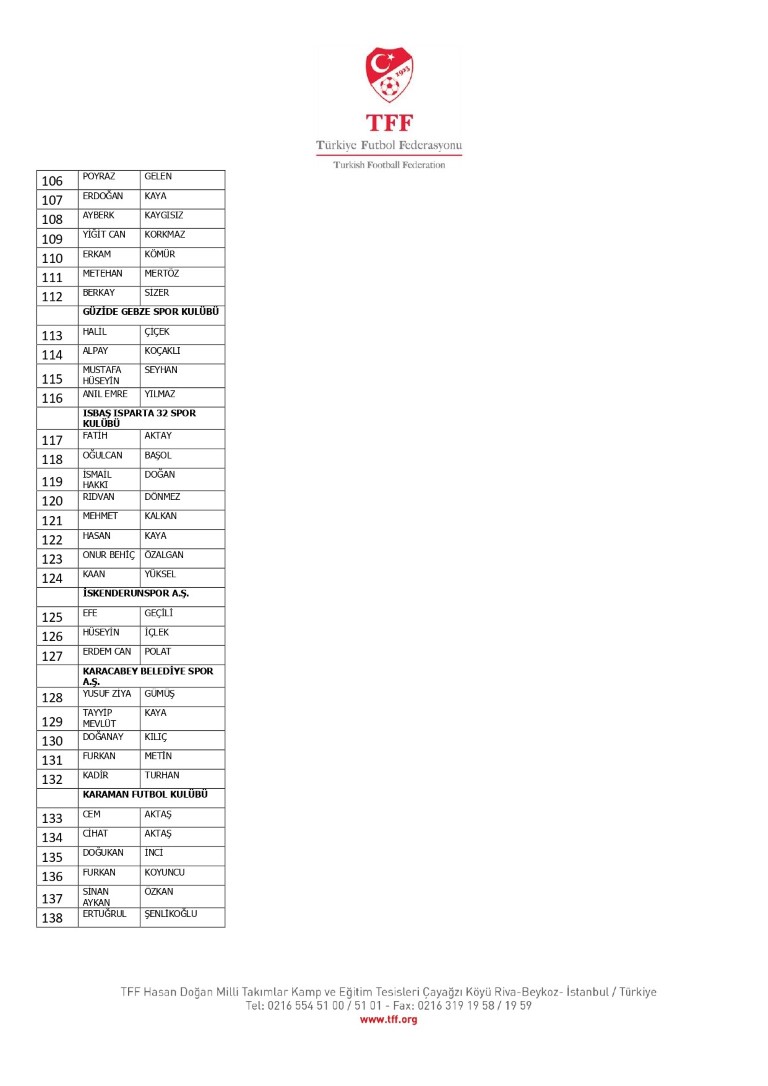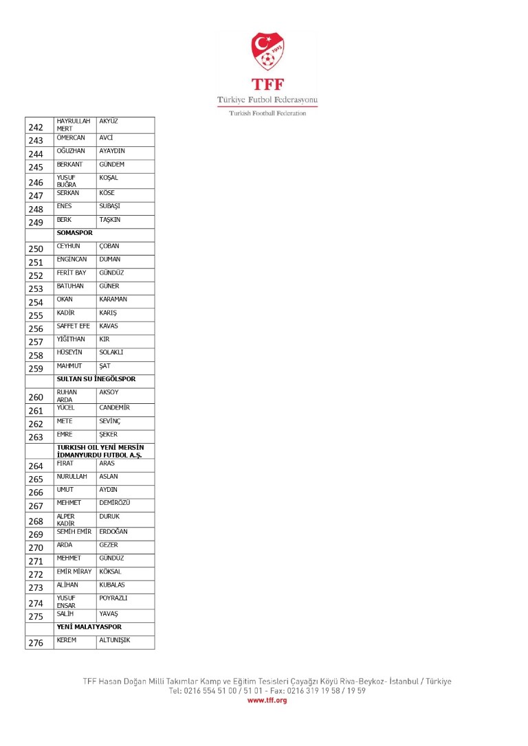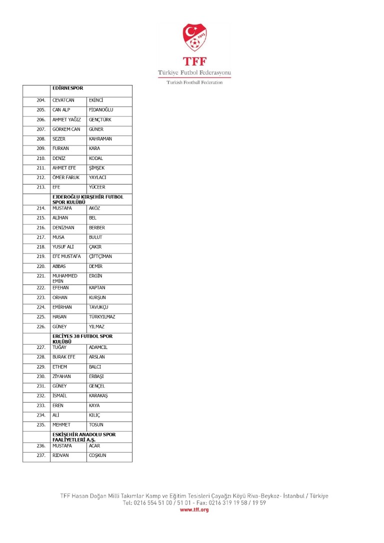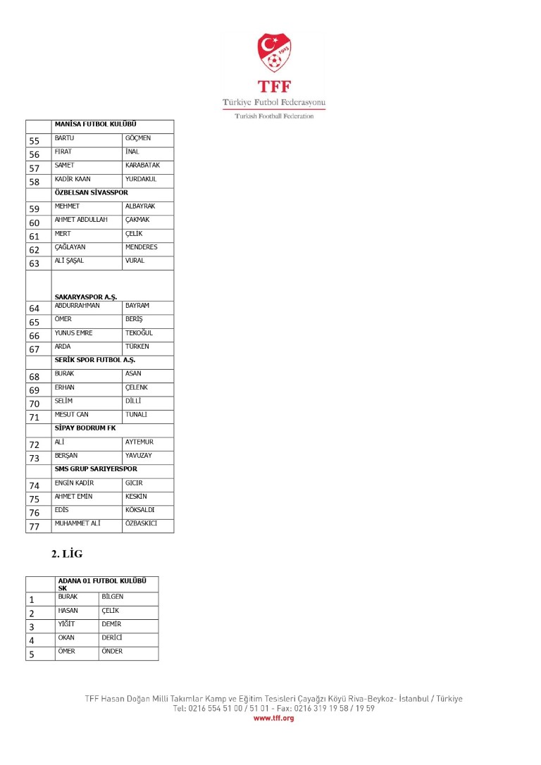 TFF Yönetim Kurulu’nun 10.11.2025 tarihli kararı ile TFF 2. Lig ve TFF 3. Lig müsabaka fikstürlerinin 2 hafta kaydırılmasına karar verilmiştir. TFF Süper Lig ve TFF 1. Lig müsabakaları daha önce ilan edildiği şekilde oynanmaya devam edecektir. Sadece tek bir kere bahis hareketi olduğu görülen 47 futbolcunun disiplin sevk işlemleri, telafisi mümkün olmayan zararlara sebebiyet vermemek adına ilgili kurumlardan gelecek cevabi evraklar neticesinde elde edilecek yeni delil ve bilgiler çerçevesinde değerlendirilecektir. Türkiye Futbol Federasyonu tarafından resmi kurumlarla yapılan yazışmalar devam etmekte olup bu gelecek cevaplara göre soruşturma genişletilerek devam edecektir. Futbol Disiplin Talimatı’nın 57. maddesi uyarınca PFDK’ya sevk edilen 1024 futbolcu aşağıda yer almaktadır" denildi.