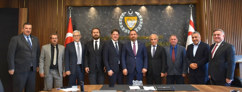 Türkiye’deki Ulusal Turunçgil Konseyi Başkanı Kemal Kaçmaz, Ziraat Mühendisleri Odası Başkanı Prof. Dr. Okan Özkaya, Interfresh Fuar Genel Müdürü Murat Özer ve Cypfruvex Türkiye Temsilcisi ile Citex Export Müdürü Mevlüt Sezer, Kuzey Kıbrıs Türk Cumhuriyeti Tarım ve Doğal Kaynaklar Bakanı Hüseyin Çavuş’u ziyaret etti.