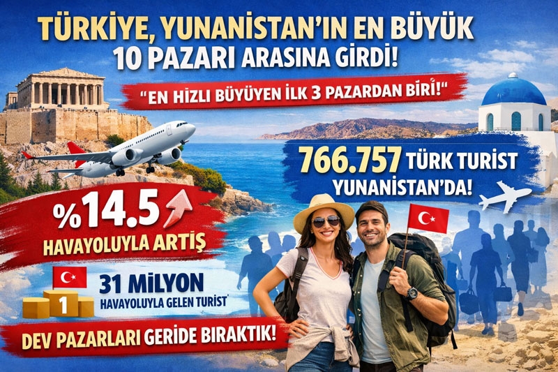 Turizm Databank tarafından açıklanan 2025 yılı verilerine göre, Türkiye, Yunanistan’ın en büyük 10 kaynak pazarı arasına girmeyi başardı. Havayolu ile girişlerde %14,5’lik artış yakalayan Türkiye, "en hızlı büyüyen ilk 3 pazardan biri" oldu.