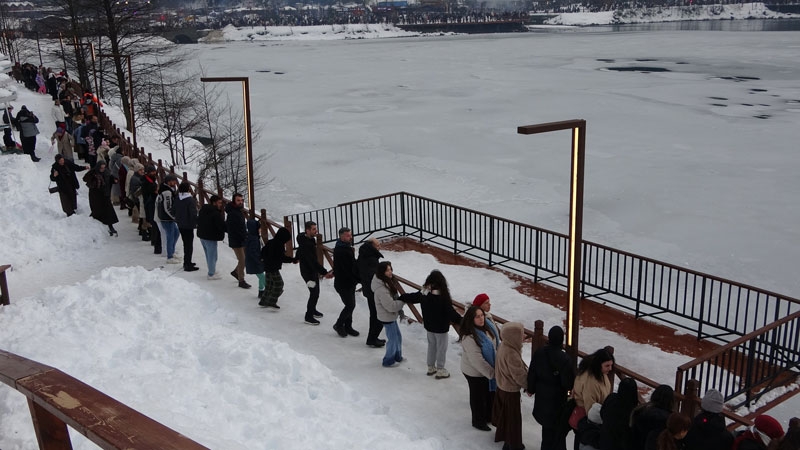 Trabzon’un dünyaca ünlü turizm merkezi Uzungöl’de bu yıl ilk kez düzenlenen Kış Festivali'nde binlerce kişinin katılımıyla gölün çevresini saran horon halkası oluşturuldu.